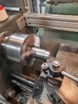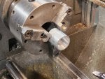 He did as I asked. Welded in the middle of the hollow spacer to keep from machining the diameter to clean it up. There is a champher on the spacer just not as dramatic as the pilot had.